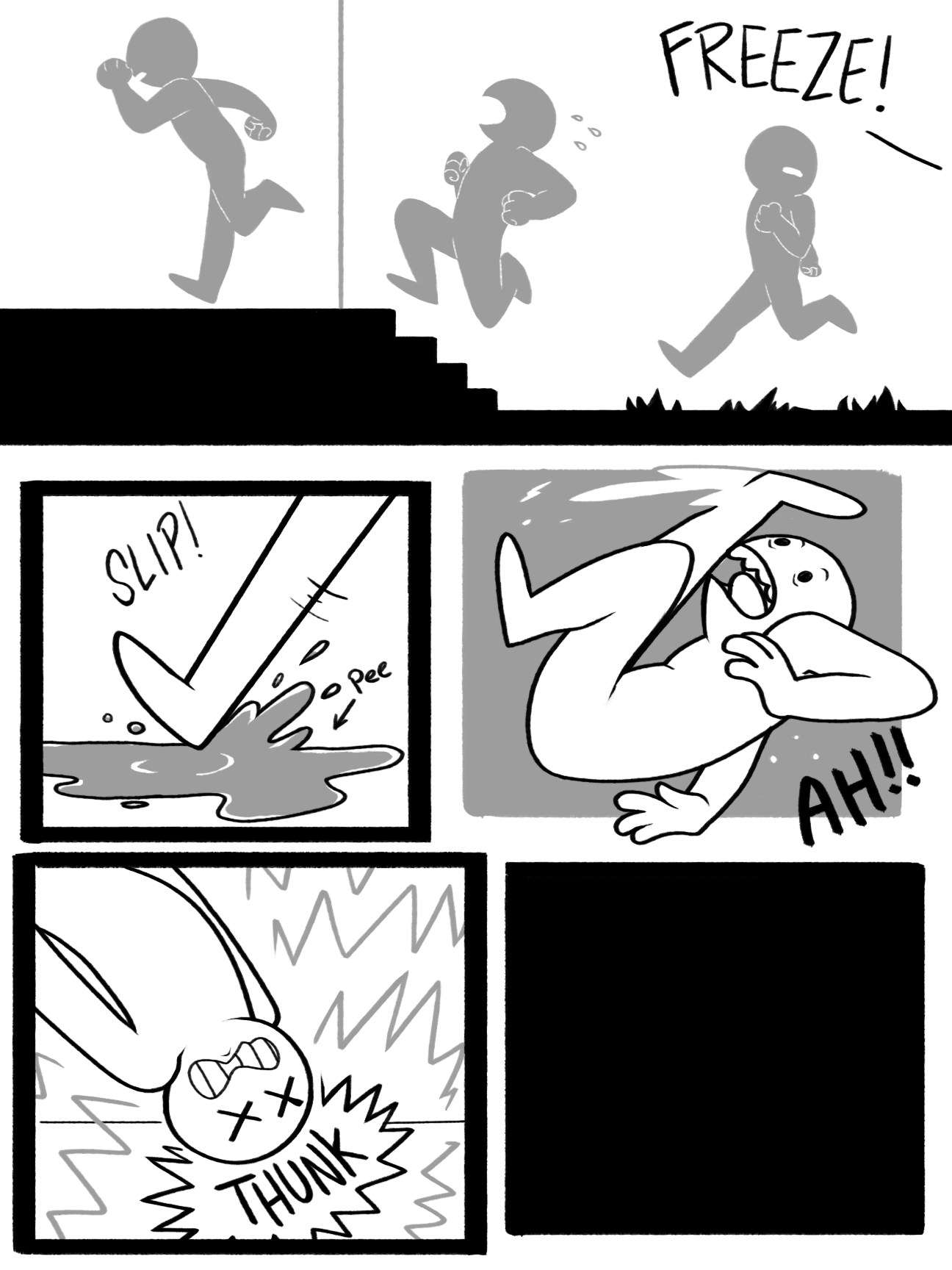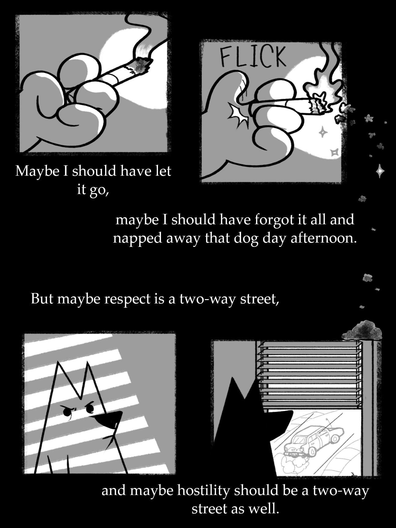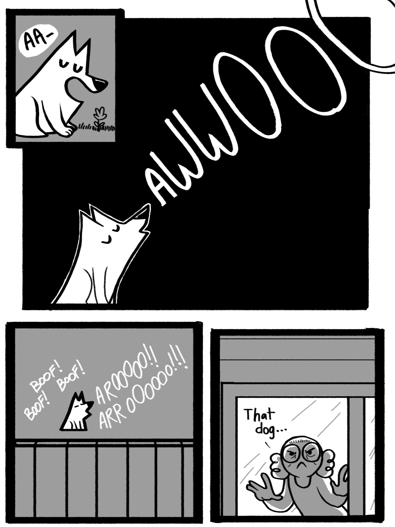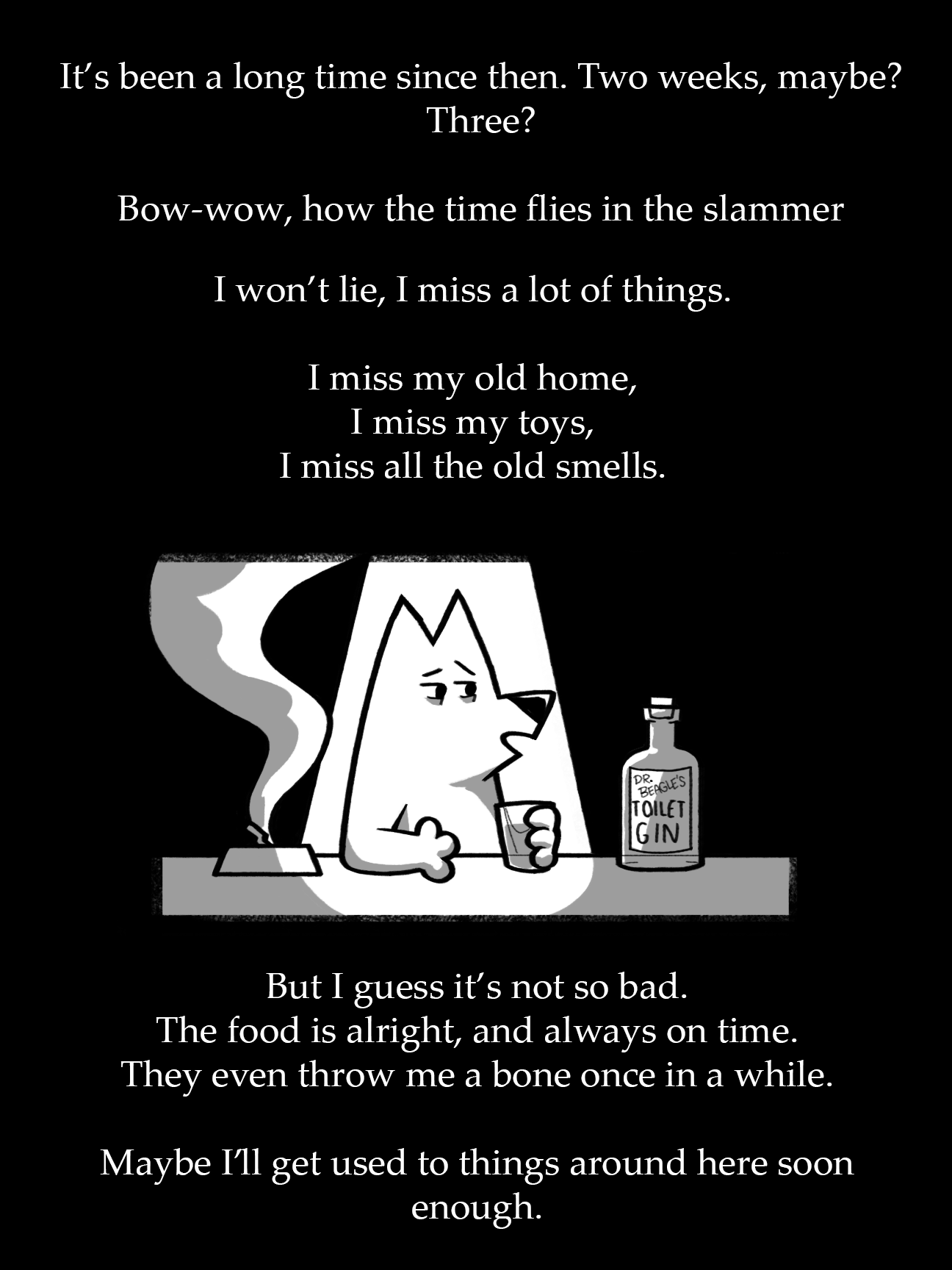 A selection of pages from Bad Dog, an improvisational grayscale book/comic that I drew over the course of October 2016 as part of an "Inktober" challenge.
