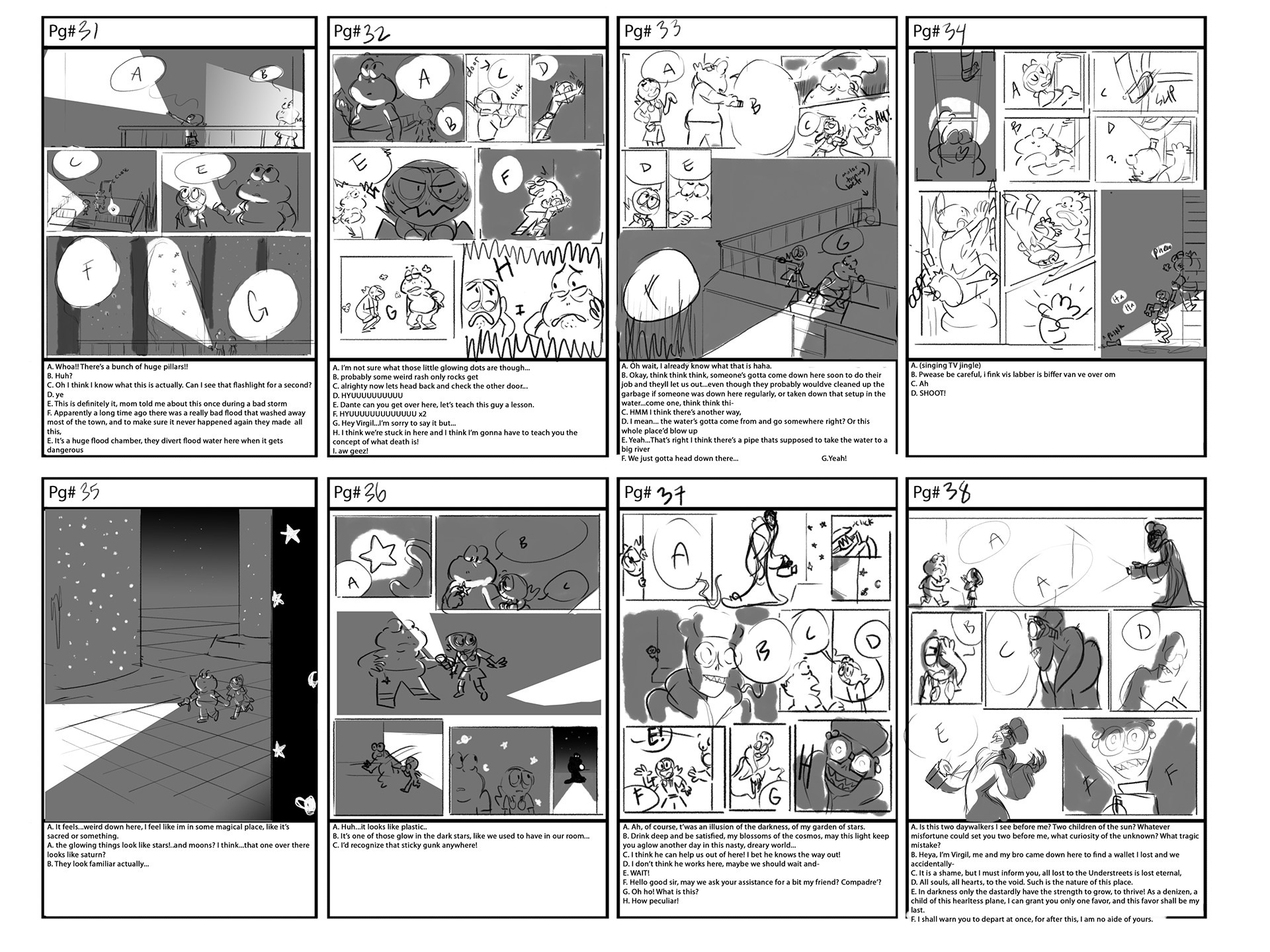 A selection of thumbnail images created in the pre-production of Divine Frogedy: Down Below.
