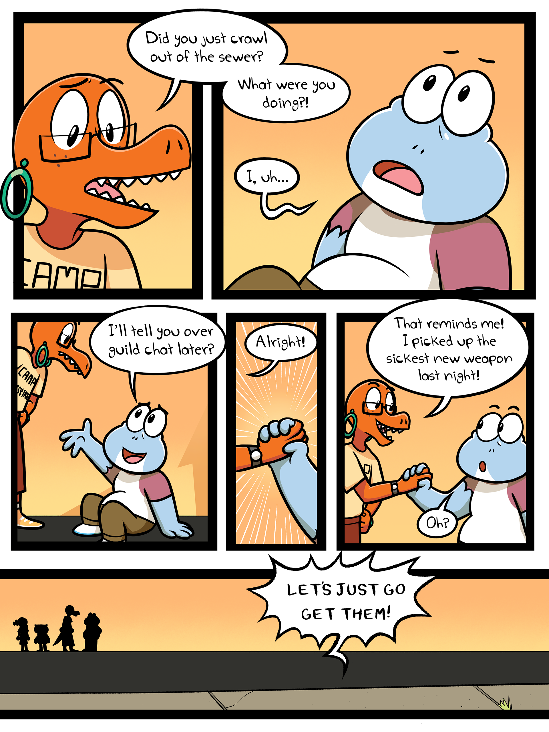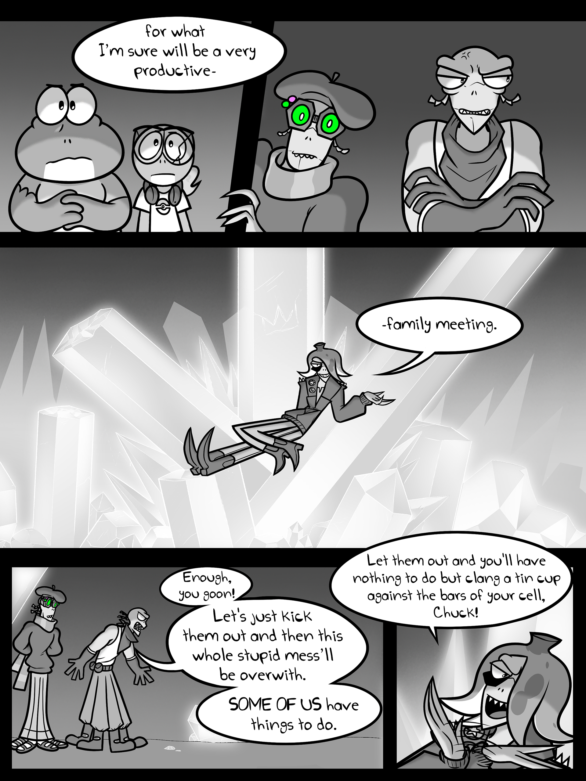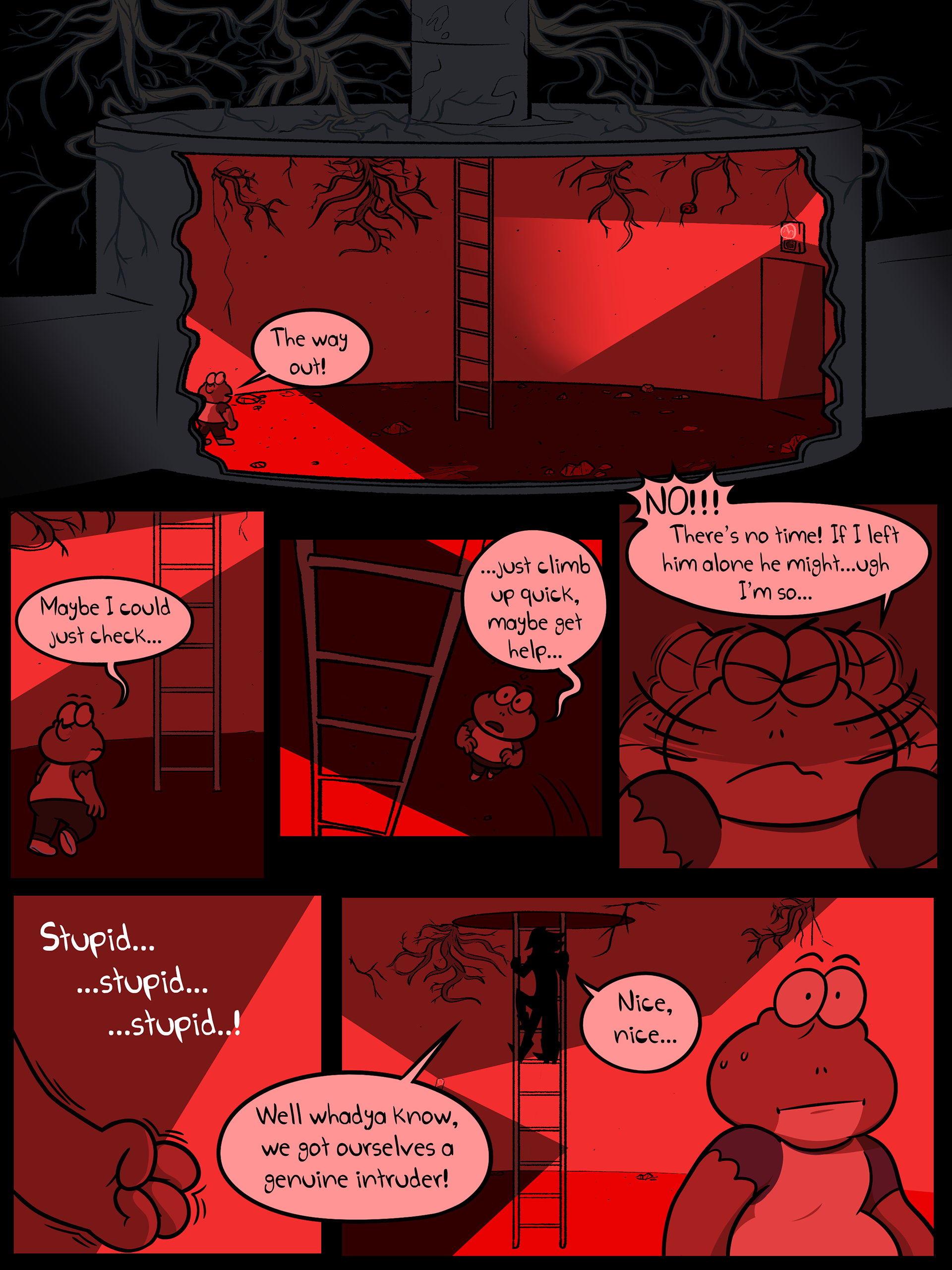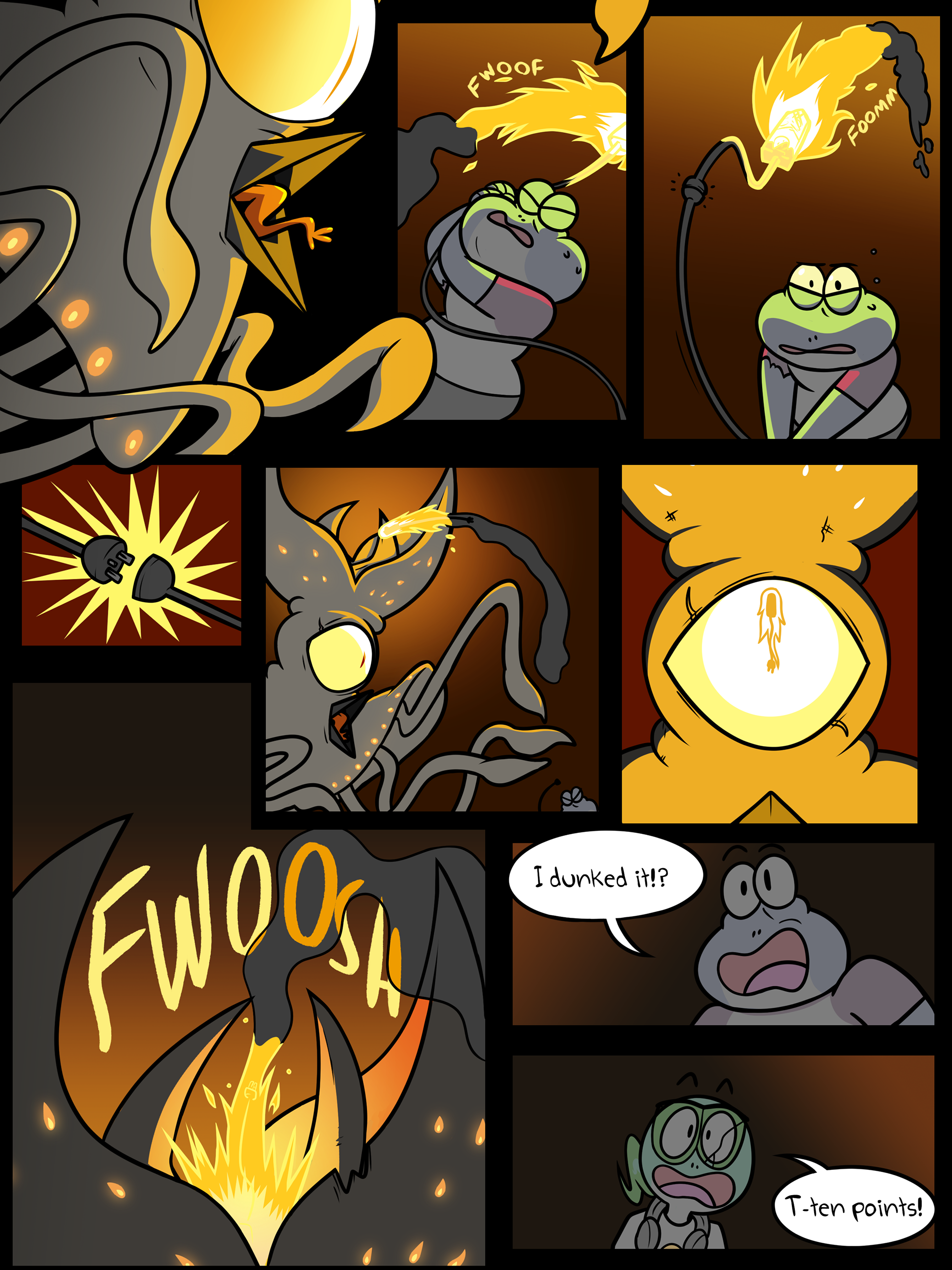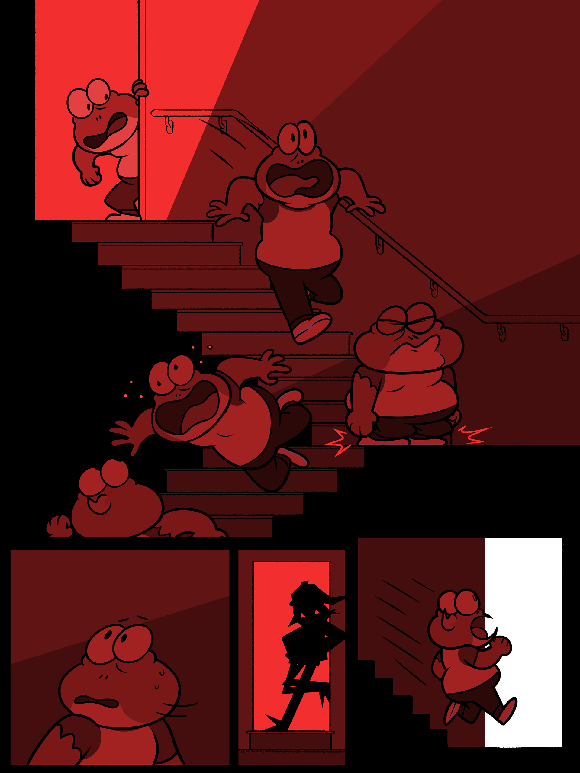 Select pages from Divine Frogedy: Down Below, a webcomic/graphic novel/amphibious adventure that's been a passion project for me these past few years .