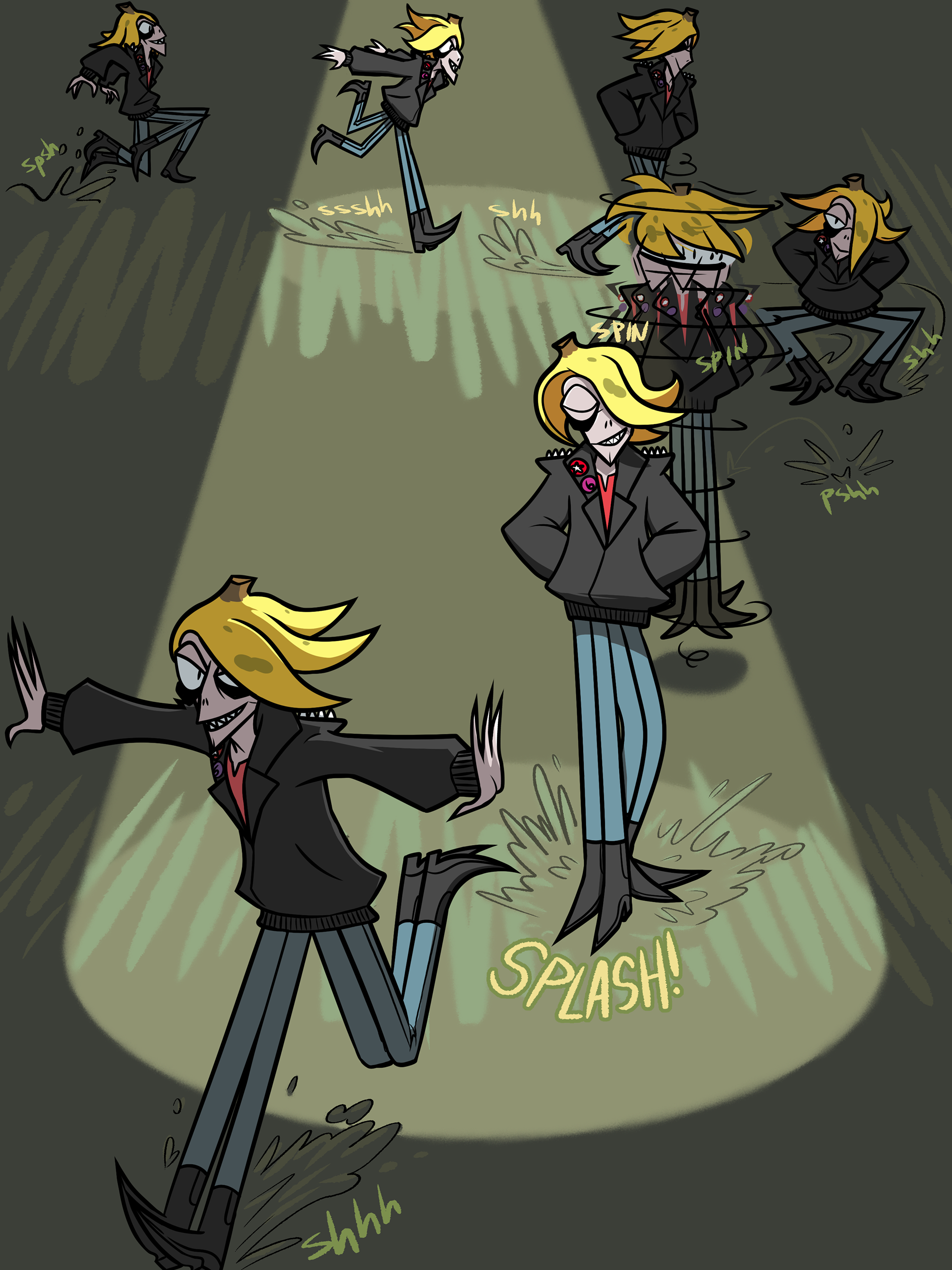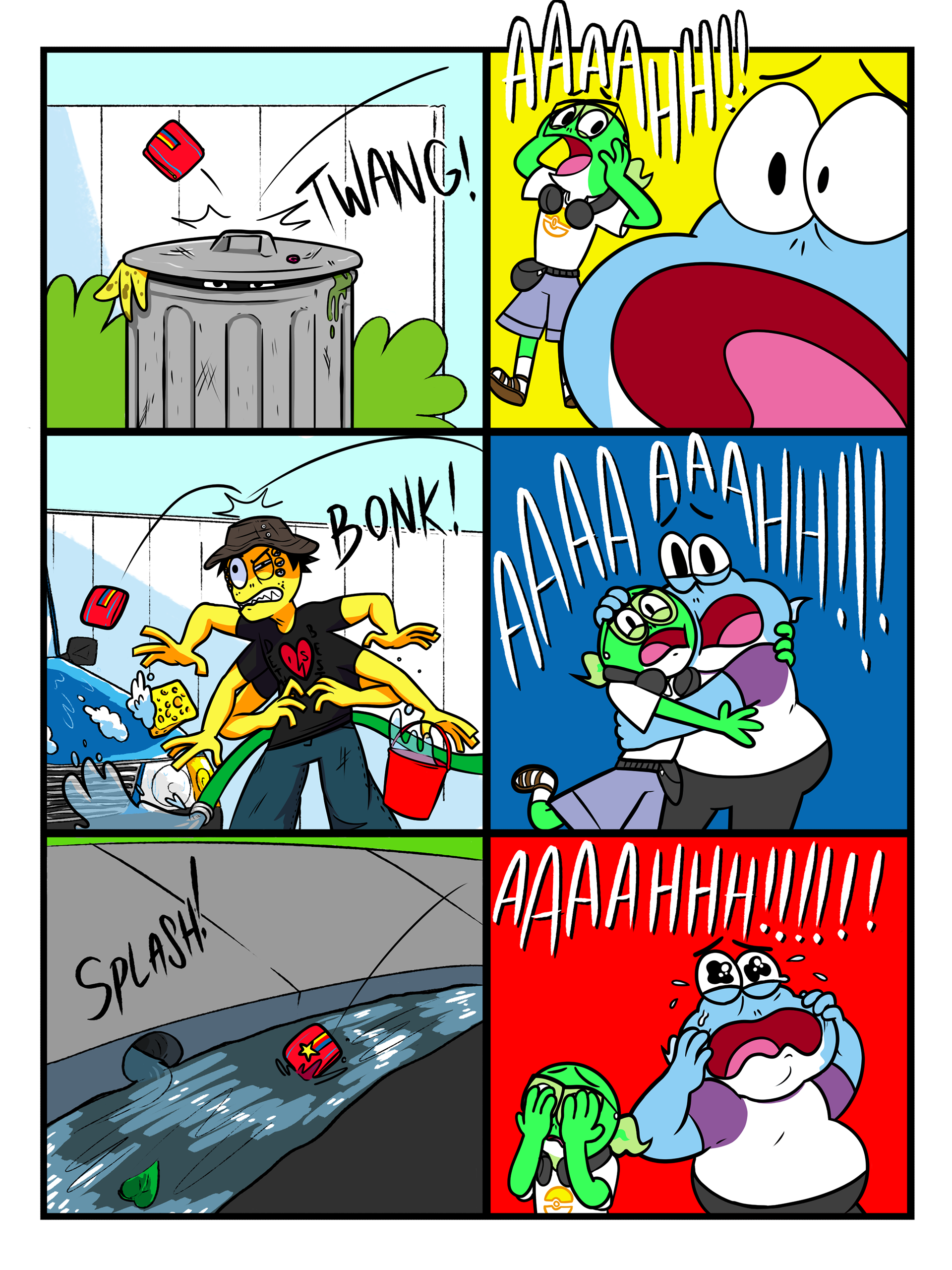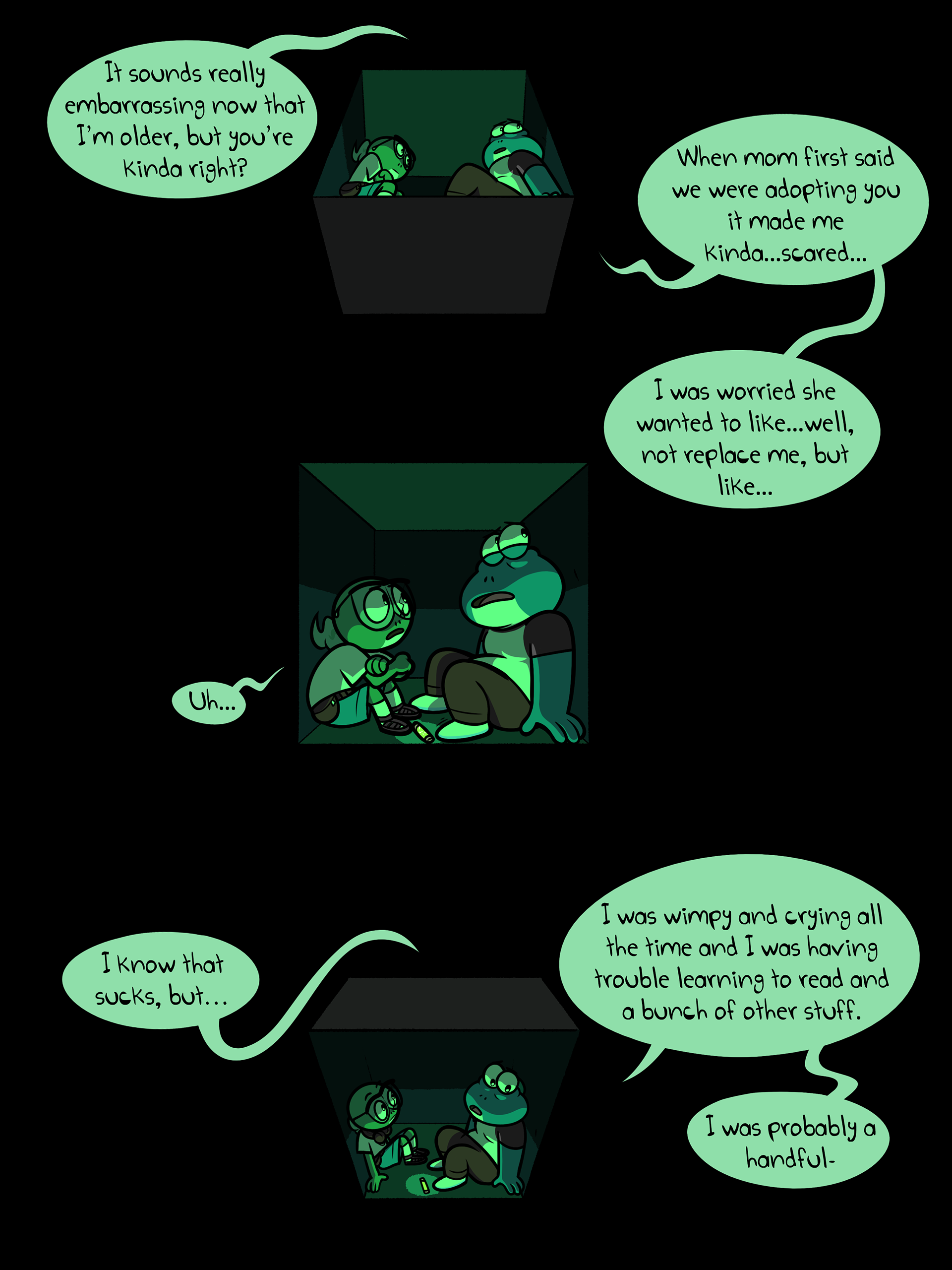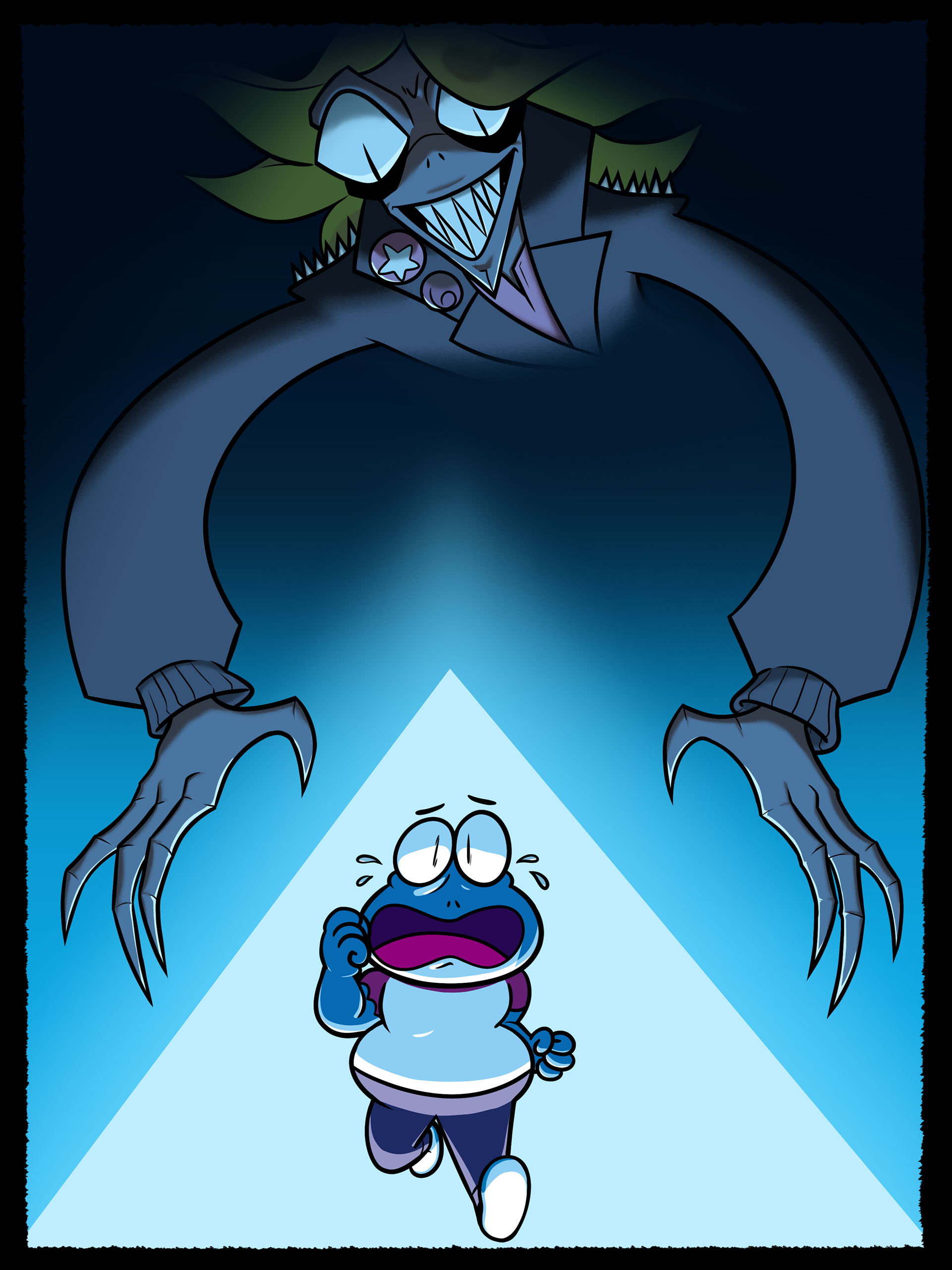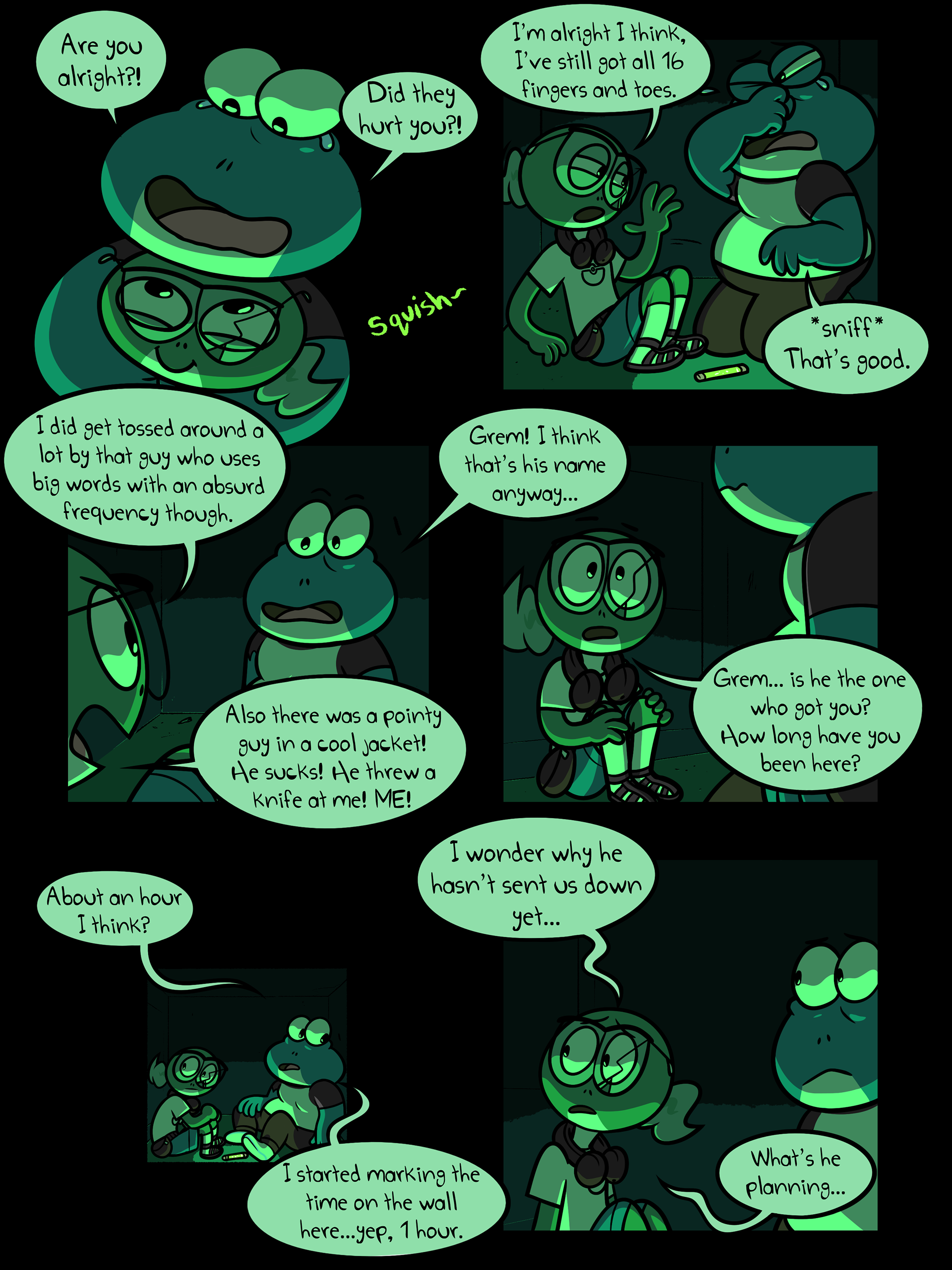 Select pages from Divine Frogedy: Down Below, a webcomic/graphic novel/amphibious adventure that's been a passion project for me these past few years .